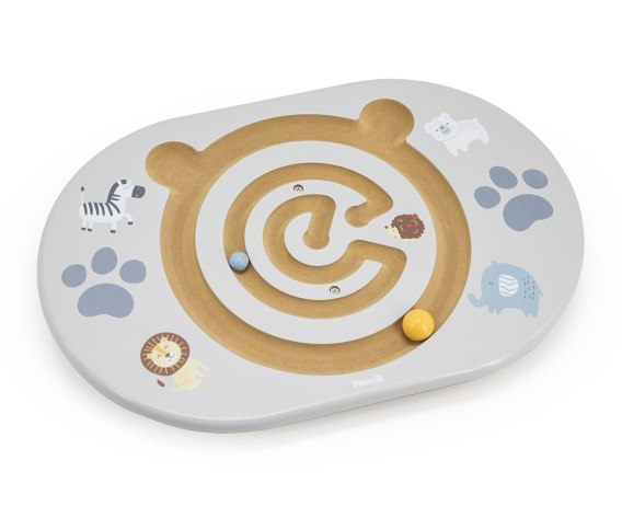 Viga 44273 PolarB Balansujący labirynt to zabawka idealna dla dzieci powyżej 4 roku życia, która wspiera rozwój równowagi, koordynacji ruchowej oraz koncentracji. Zestaw składa się z deski balansującej ze żłobieniami w kształcie misia oraz dwóch drewnianych kulek. Zadaniem dziecka jest przesuwanie kulki wzdłuż labiryntu, balansując na desce, co stanowi świetne ćwiczenie równowagi i kontroli ciała.