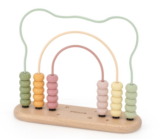 Zabawka składa się z drewnianej podstawy oraz metalowych torów w pastelowych kolorach, po których dziecko może przesuwać drewniane koraliki o różnych barwach. Dzięki zaokrąglonym kształtom i bezpiecznemu wykończeniu jest idealna już dla maluchów powyżej 12. miesiąca życia.