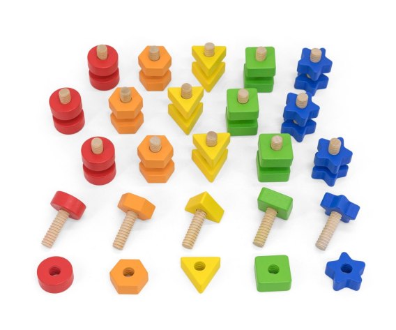 Ten kolorowy zestaw sensoryczny od firmy VIGA to kreatywna zabawka dla Twojego dziecka, dająca dużo frajdy i długotrwałą zabawę, z której twoje dziecko będzie korzystać przez lata. VIGA zestaw 40 elementów nakrętki i śruby zawiera 20 par nakrętek i 20 par śrub w 5 jaskrawych kolorach i kształtach. Zabawa polega na łączeniu i rozłączaniu tych kolorowych kształtów, dziecko uczy się je poprawnie nazywać. To świetna zabawa podczas mieszania i dopasowywania! Promuj liczenie, sortowanie i umiejętności motoryczne oraz zachęcaj do rozwiązywania problemów i konstruktywnej zabawy. Sensoryczne nakrętki i śruby od marki VIGA to zabawka rozwijająca analityczny sposób myślenia, zdolności manualne oraz ćwiczy cierpliwość i wymaga od maluszka zaangażowania.